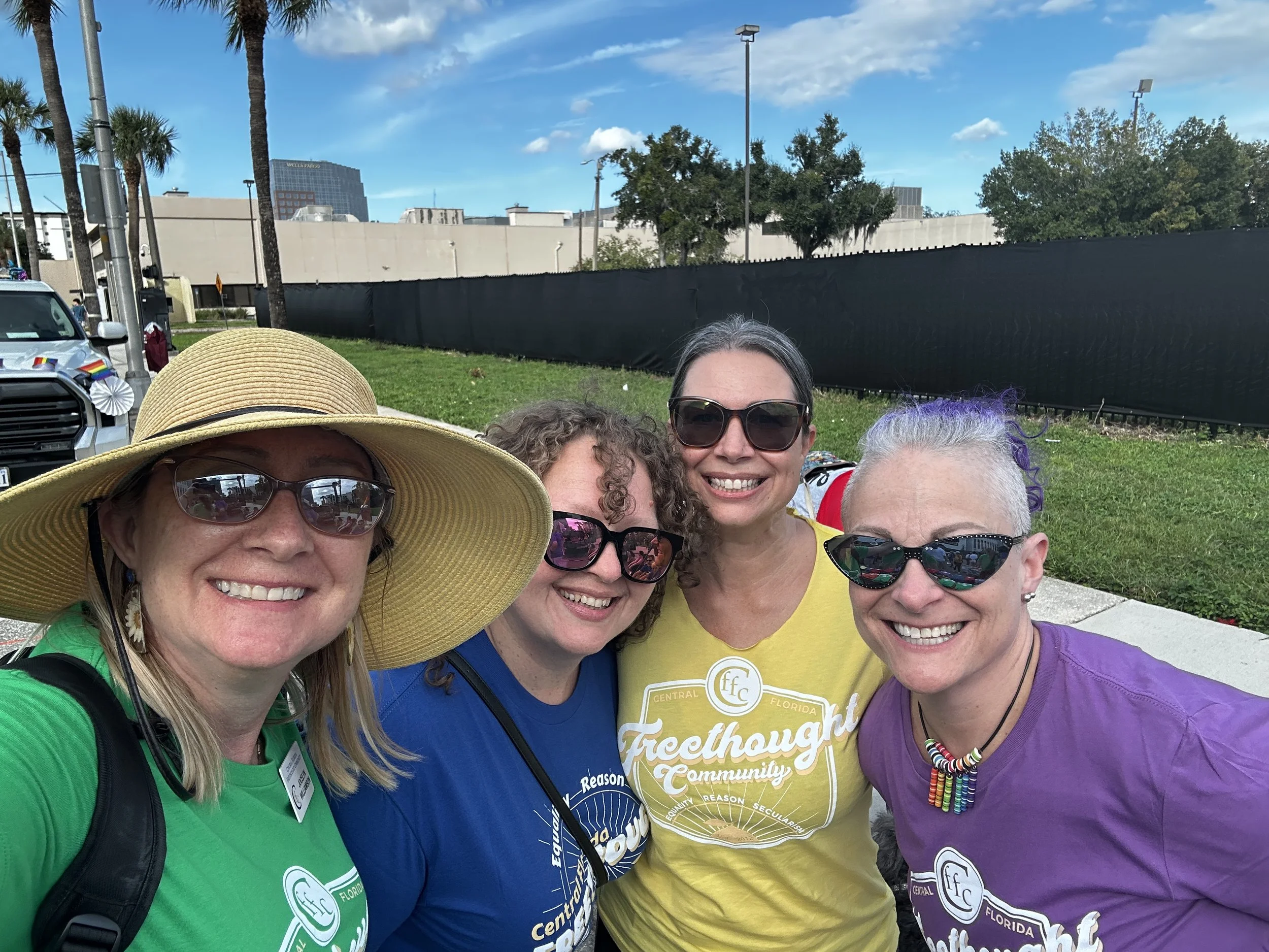 Outreach includes exhibit tabling at local or campus events, marching in parades, participating in panel discussions representing the views of atheists, humanists, or the separation between religion and government. Some of these events are on a cycle, such as Orlando Pride or the Veterans Day Parade in Orlando. Others come up whenever we are invited. Keep an eye on the Meetup calendar for these.